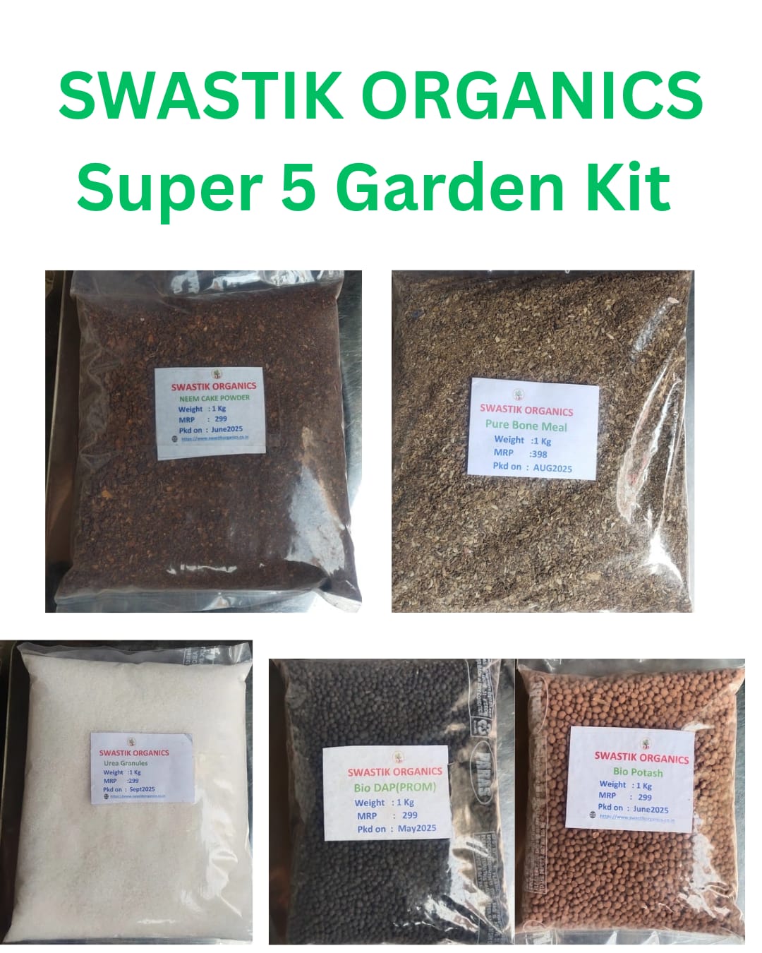 Swastik Organics Garden Kit Super Pack of 5 Organic Fertilizers – More nutrition for all Plants. Total weight is 5 Kg.